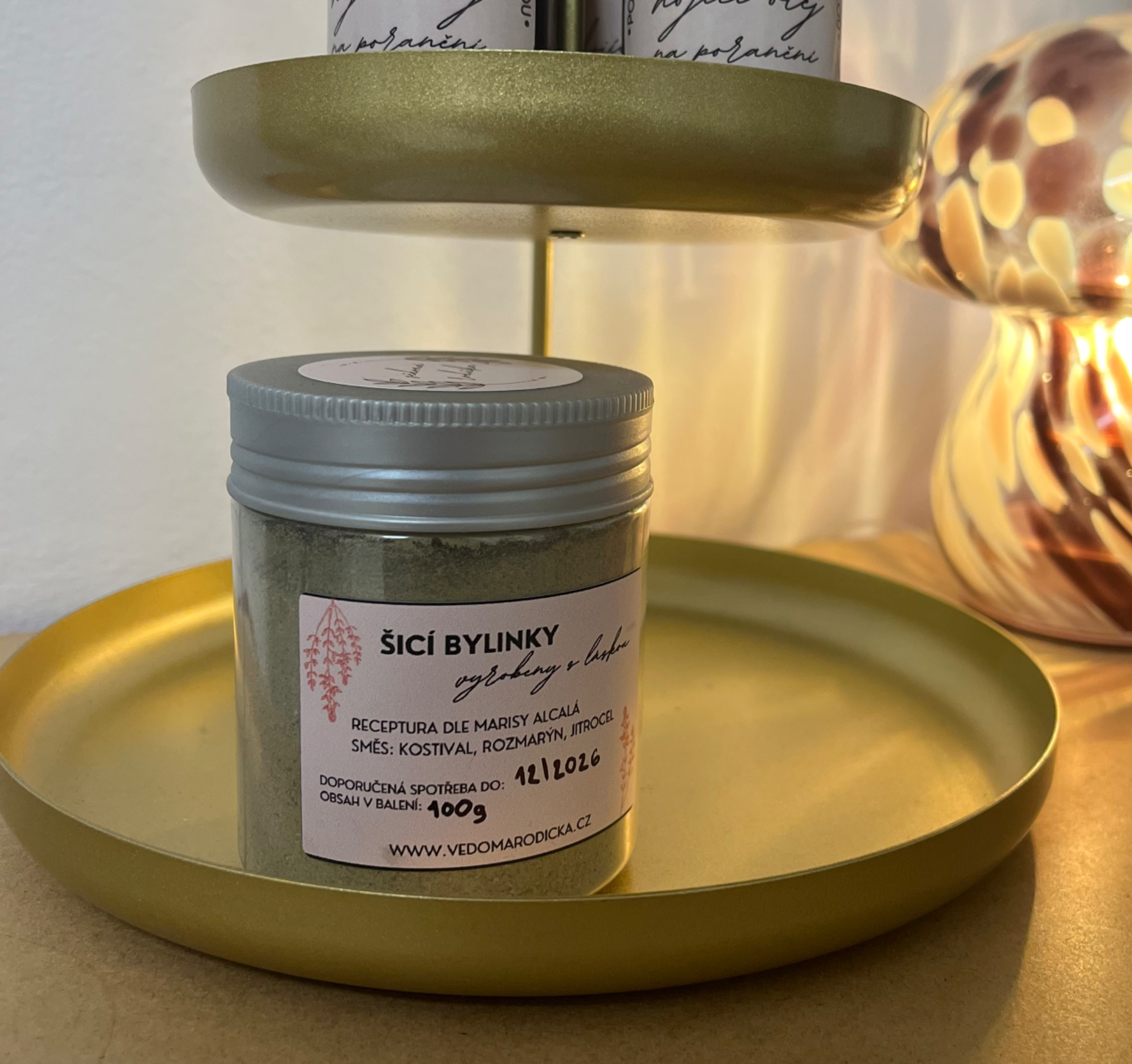 Jedná se o jemně mletou směs rozmarýnu, jitrocele a kořene kostivalu. Společně se zeleným jílem (KTERÝ SE ALE SE SMĚSÍ NEMÍCHÁ) se nejvíce užívá při hojení porodního poranění. Já věřím, že je ale dobrým pomocníkem v každé domácnosti, neboť hezky hojí jakékoliv poranění kůže.